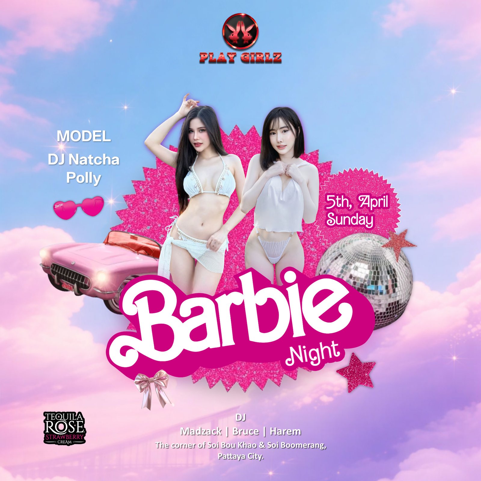 π Play Girlz Pattaya β Soi Boomerang π Pattayaβs hottest night is back β bigger, better, and full Barbie magic! Play Girlz transforms into a pink fantasy playground overflowing with glam, sparkle & Tequila Rose vibes. β¨ WHATβS NEW: π New Supermodels: DJ Natcha & Polly π More Barbie, More Decor, More Fun π₯ ALL THE FAVES: π 60 Play Girlz Models β pink perfection everywhere π 8 Play Girlz Show Girls β seductive stage magic π€ Midget Star: KEN β the party legend π₯ Fire Eating & Body Fire Show β¨ World-Class Pole Performances π§ DJ MADZAC,DJ BRUCE & DJ Harem β Commercial + EDM Bangers πΈ Red Carpet Arrivals β upgraded Barbie & Tequila Rose fantasy set πΎ VIP Packages & Tables β limited, luxurious & worth every baht π₯ Sponsored by Tequila Rose β Think Pink, Drink Pink π Dress Code: Pink, White, Sexy & Glam π² Reserve your Private VIP or Floor Table via our website or DM on WhatsApp/social media. Spots are limited!
